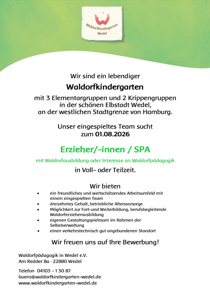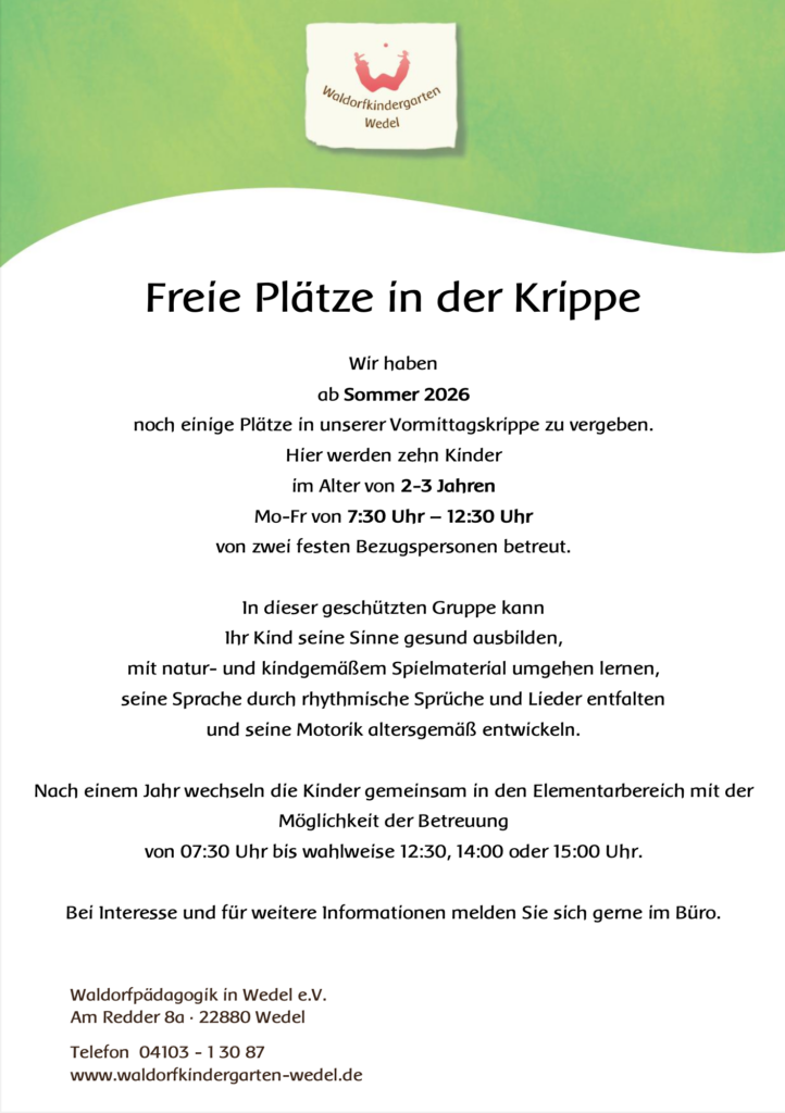 Unsere Erziehungsaufgabe stellen wir uns aufgrund der Beobachtung, dass die Kräfte der Kindheit in immer stärkerem Maße bedroht und gefährdet sind. Der wachsenden Entfremdung natürlicher Lebensursprünge, dem zunehmenden Werte- und Orientierungsverlust sowie der großen Verunsicherung gegenüber Erziehungsfragen wirken wir durch die besondere Art unserer Pädagogik entgegen.